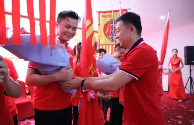 湯義孝副總裁為上階段成績突出的優(yōu)秀個人送上鮮花獎杯,也祝賀飾湛江公司獲得誓師大會冠軍獎!感謝大家在活動中全力以赴,一路風雨同行,8月26日,讓我們恭迎英雄們的再次歸來!